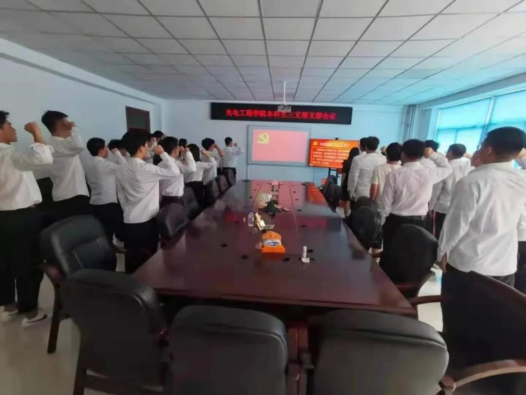 在英国威廉希尔足球官网会议室开展第三党支部的宣誓仪式,由王伟老师和崔明谦老师主持,在慷慨激昂的《国际歌》之后,崔明谦老师带领全体三支部成员进行宣誓。王伟老师表示:入党宣誓,是对新党员进行党的基本知识教育的一种有效的重要形式,它表现了入党的庄重性和严肃性,党员不仅仅是一种身份、一种荣誉,更意味着一种责任、一份追求。