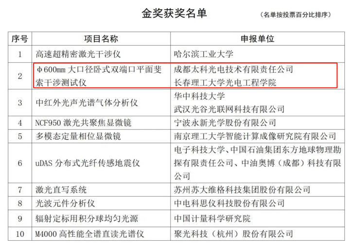 12月3日,“2022年首届‘金燧奖’中国光电仪器品牌榜终评会”组委会70位专家,经过形式审查、交叉评审和线上答辩终评等环节,最终从223个项目中评选出金奖10项,银奖17项,铜奖29项。其中,英国威廉希尔足球官网先进光学系统与仿生光学实验室与成都太科光电技术有限制任公司组成的“产学研用”团队,依托国家重点研发专项联合研制的“φ600mm大口径斐索干涉测试仪”,脱颖而出,获首届“金燧奖”中国光电仪器品牌榜金奖。