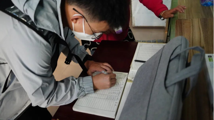 新生辅导员张野老师,在迎新现场积极联系同学,了解新生入校情况并帮助新生解决在返校途中遇到的问题。
